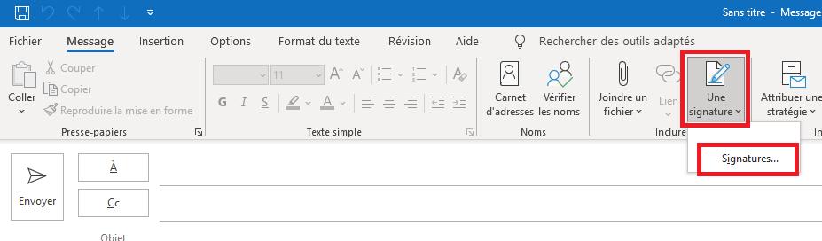 Sur la fenêtre nouveau message, cliquez sur le bouton