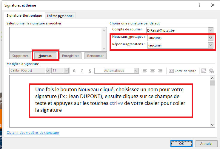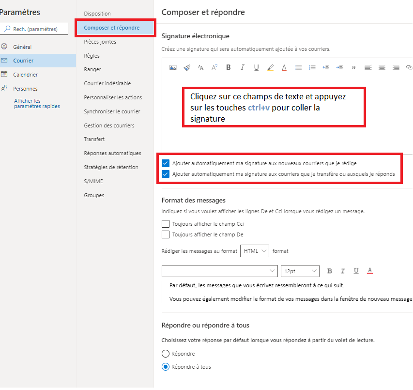 ctrl_+_v pour coller la signature. Sélectionner ensuite la signature créée pour les options
